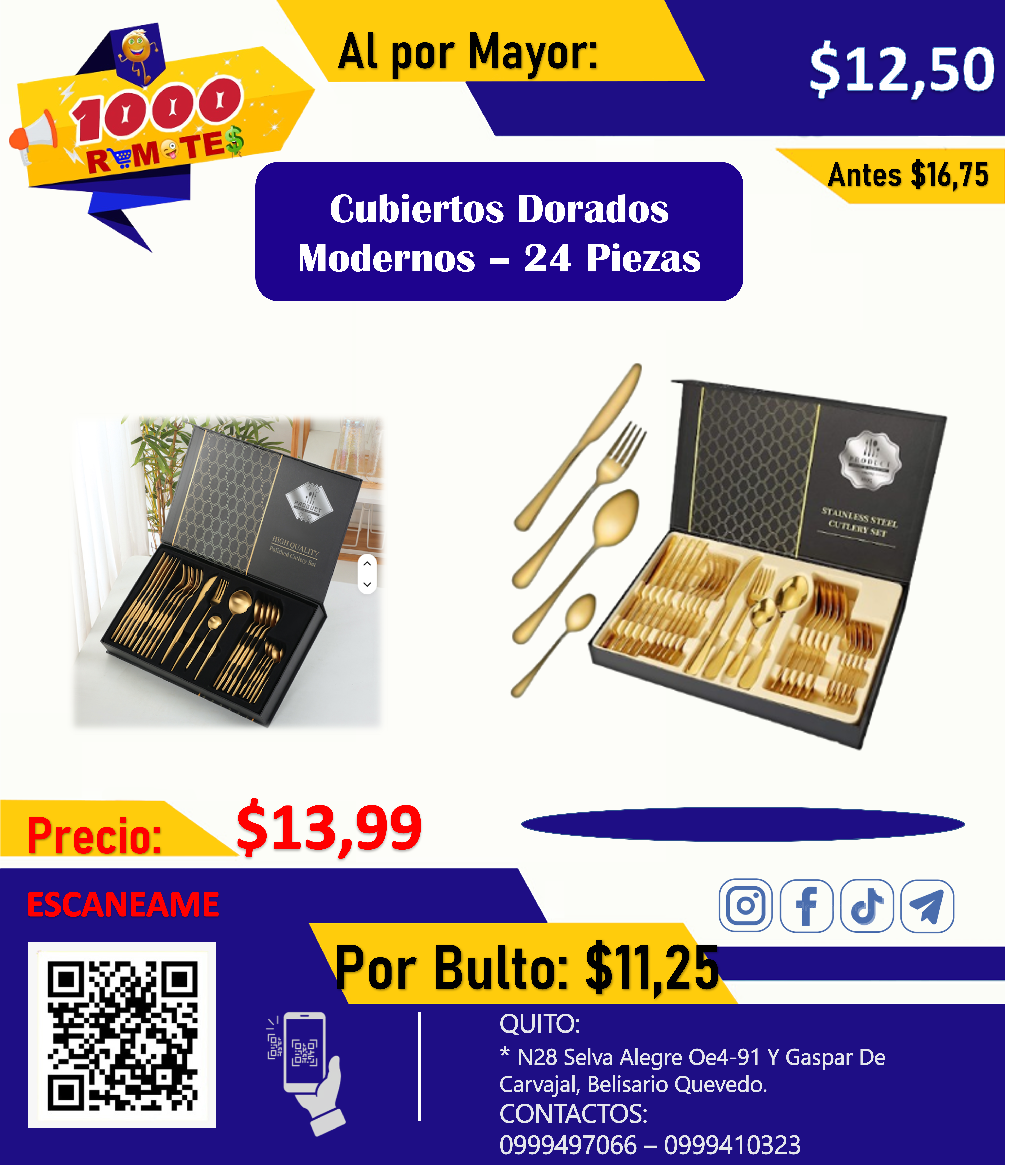 Cubiertos Dorados Modernos – 24 Piezas
